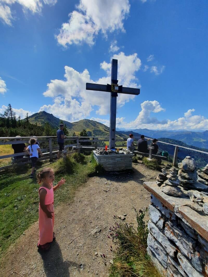 Terug in Flachau hebben we vanuit het dorp de stoeltjeslift gepakt naar het Bergstation Starjet 2, met de Flachau Sommer Card kregen we een retourtje cadeau. Eenmaal boven stapten we bij het tussenstation uit om de kindvriendelijke wandelroute ‘Floris Erlebnispfad’ te lopen.