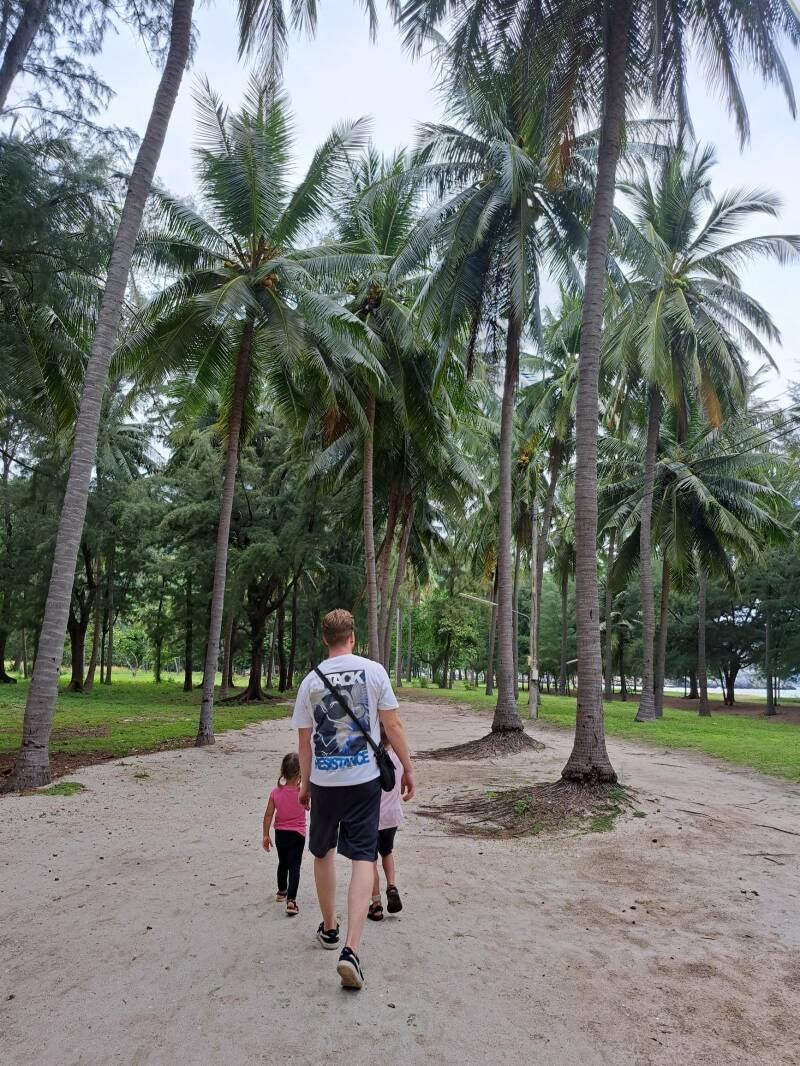 Er was 1 supermarkt, ongeveer 5 hotels en ook 5 restaurants die open waren allemaal gelegen aan de weg bij het strand. Hier en daar zagen we nog wat guesthouses en kleine resorts maar het merendeel leek gesloten. We maakten gretig gebruik van de fietsen en de scooter met zijspan die er stond. We pasten hier alle 4 op, dus alles wat verder lag dan loop of fietsafstand ging op de scooter. Wel zo veilig want rond 17.00 uur werd het donker en er was geen verlichting langs de weg, ook de zwerfhonden konden we nu met snelheid achter ons laten. Aisah vond het geweldig om op de polderweggetjes tussen Wouter zijn benen te zitten om een stukje te sturen. Zo reden we met een big smile door de omgeving vol met hoge palmbomen, grazende koeien, zelfgebouwde huisjes en watervogels. Ideaal was het ook zeker, zonder dit vervoermiddel hadden we toch minder van het gebied kunnen zien.